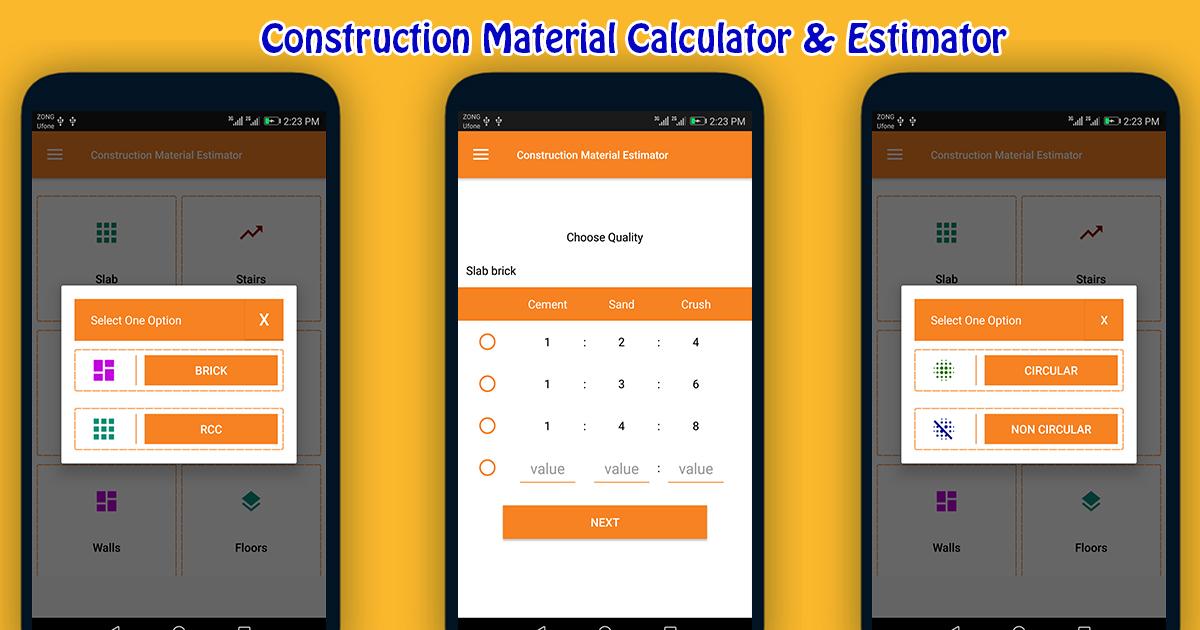 Construction Material Estimator,Construction Calculator, Construction Estimator