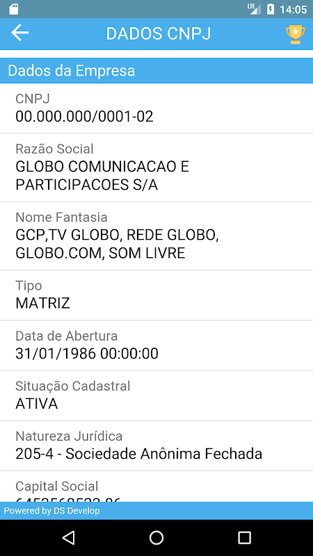 Permohonan syarikat perundingan dengan CNPJ atau nama