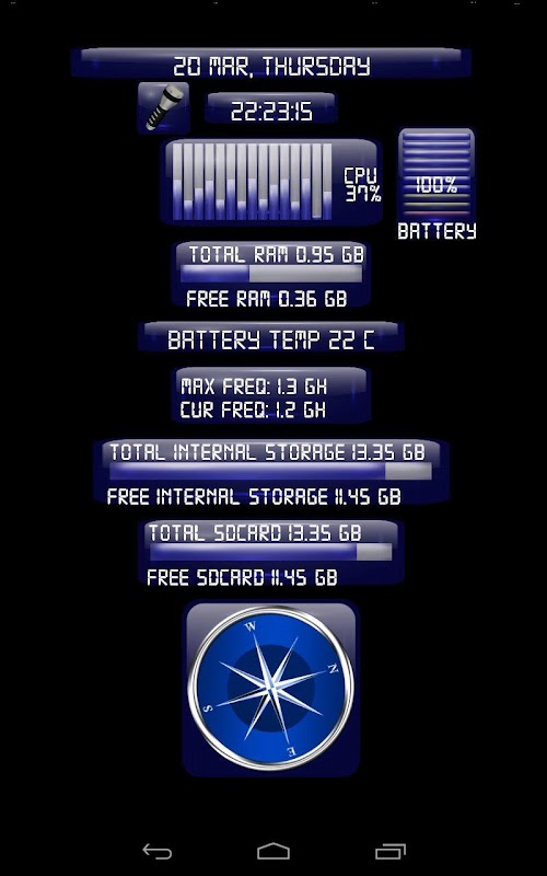In the control panel, you can add information from any sensor which is in the device.