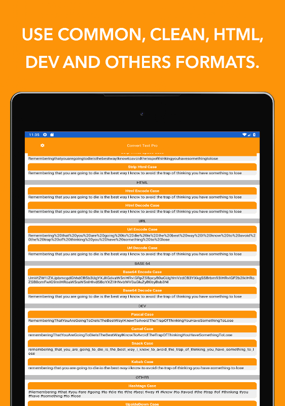 Convert Text Pro membolehkan anda menukar teks ke format yang paling popular.