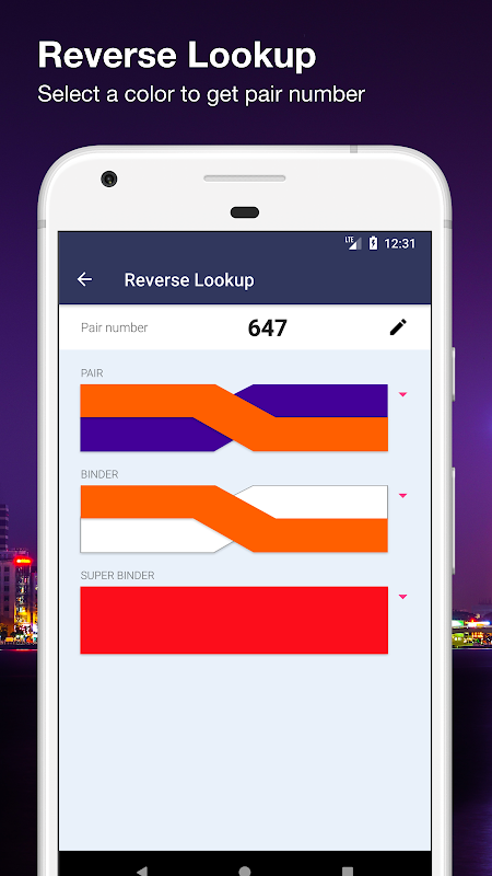 Walau bagaimanapun, aplikasi Telecom Kod warna boleh menyediakan kod warna dalam sekelip mata. Mudah masukkan pasangan kabel yang bermula dan bilangan pasangan akhir setiap kiraan dalam kabel. Kemudian, masukkan nombor pasangan anda ingin mencari dan ia akan mengira dan memaparkan warna Pair, Binder, dan Super Binder.