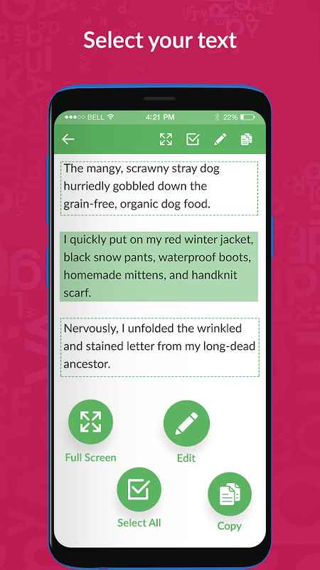 Aplikasi ini dapat menyalin & menampal teks skrin dan anda juga boleh mengedit & menerjemahkannya.