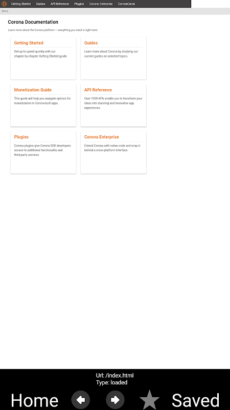 A simple application that allows you to view Corona's documentation, whilst not connected to the internet.