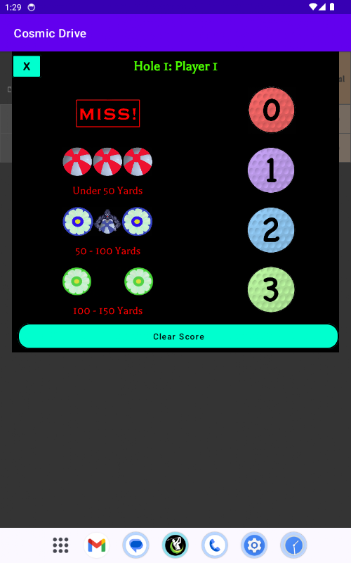 Semasa permainan pemanduan kosmik anda, kad skor ini akan membolehkan anda memasukkan markah anda untuk setiap lubang dan melihat kedudukan semasa pada bila-bila masa.