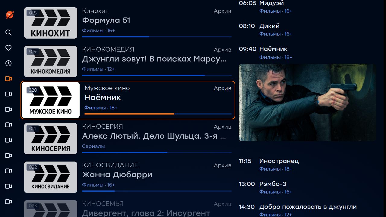Hiburan, kanak-kanak, sukan, pendidikan, muzik dan program TV lain tersedia untuk ditonton. Sebahagian daripada mereka: