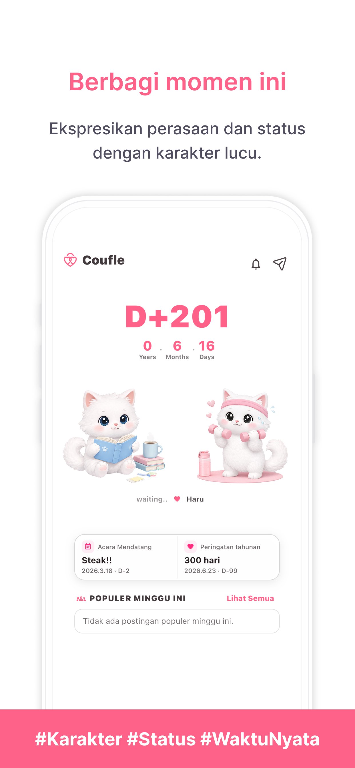 Bagikan suasana hati dan status Anda saat ini kepada pasangan menggunakan karakter yang lucu.