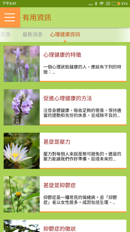 4. 心理健康資訊:查看心理健康與抑鬱情緒的資訊;