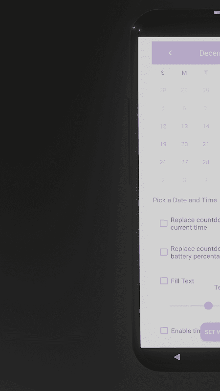 Kertas dinding hidup yang dikira mengikut tarikh dan waktu yang anda pilih, anda boleh menetapkan ukuran teks, warna teks dan menetapkan gambar latar