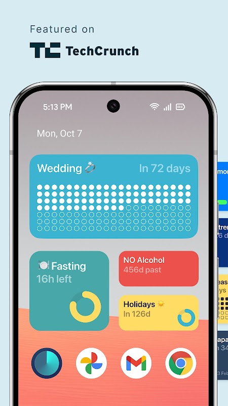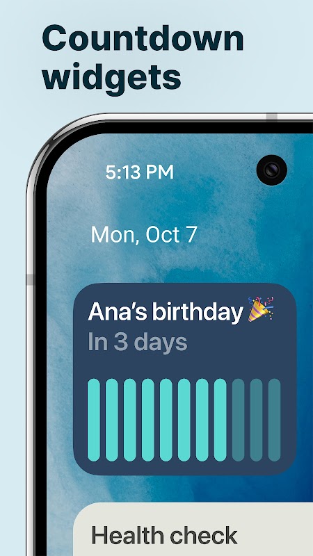 Kira berapa hari sehingga acara penting dengan widget kiraan Pretty Progress dan kira detik. Widget kira detik hari lahir, penjejak hari untuk berhenti alkohol atau mengetahui masa yang tinggal sehingga tarikh akhir – kekalkan motivasi dengan peringatan SENTIASA HIDUP pada Skrin Utama anda.