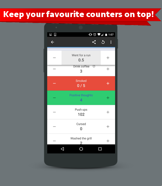 Counter membolehkan anda untuk mengira segala-galanya, inventori, buku yang dibaca atau kalori.