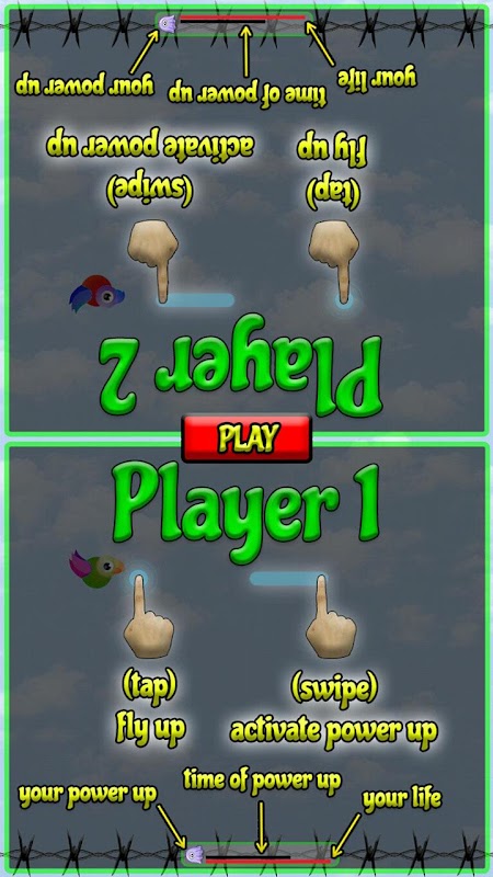 - Player vs player: defeat second player by using all power ups.