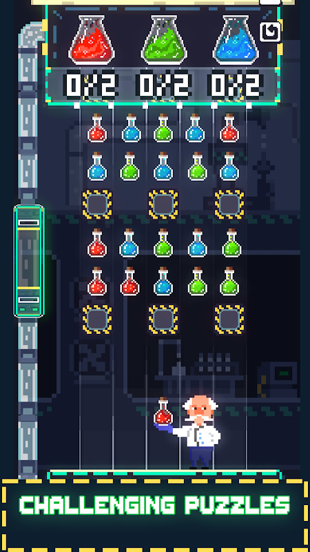 Crazy Chemist Reinvents Potion Games menjadi pengalaman menyelesaikan teka-teki mendalam yang tidak akan anda lupakan! Permainan ini diilhamkan dari permainan pencocokan jubin klasik dengan sentuhan penggabungan ramuan