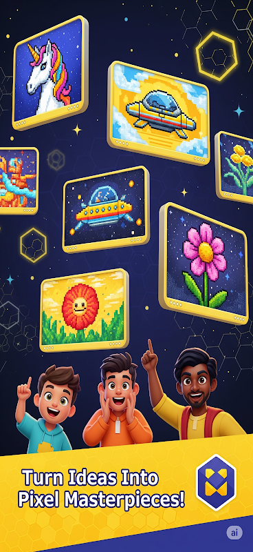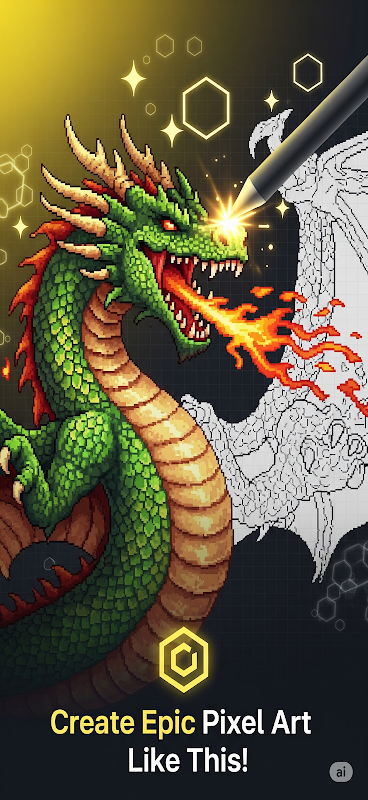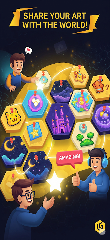 Suka apa yang anda cipta? Kongsi seni piksel anda terus ke platform sosial kegemaran anda dengan hanya satu ketikan! Sama ada bintang bercahaya atau naga agung, tunjukkan reka bentuk peta bit anda kepada rakan, keluarga dan pengikut. Tonton suka dan komen bergulir sambil karya piksel anda menarik perhatian media sosial—seni anda hanya tinggal perkongsian daripada menjadi tular!