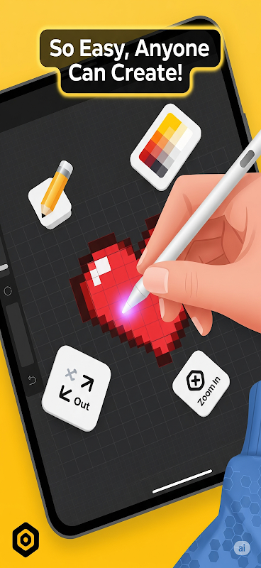 Ubah idea anda kepada keajaiban piksel dengan antara muka yang mudah dan mesra pengguna. Grid digital kami membolehkan anda melukis peta bit dengan mudah, dengan stylus bercahaya yang terasa seperti sihir di tangan anda. Pilih daripada palet warna yang terang, zum masuk untuk ketepatan dan saksikan ciptaan anda dihidupkan—sama ada kapal angkasa retro, bunga yang sedang mekar atau makhluk mitos. Tidak kira tahap kemahiran anda, anda akan menghasilkan seni piksel epik dalam masa yang singkat!