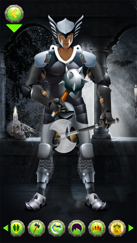 You can very easily make a knight the way you like. Just choose for him impenetrable protectors for torso, arms and legs. These steel armors and other protectors are made of the highest quality steel and your warrior would be strong and indestructible! You have a great variety of shields, swords, war axes and other weapons that will serve your knight for the attack and for the knight defense in the same time. Place the crown in his hair or one of the many helmets when he goes to fight knights. And now, when he is ready to fight for a glory, choose one of the best backgrounds, save your model and take a photo of your knight. Set it as a knight wallpaper for your cell phone or share it with your friends and family. Create your own knight and tell everyone your best knight story!