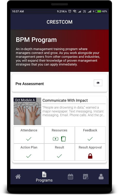 Crestcom menyampaikan pengalaman pembelajaran interaktif yang membantu orang menghasilkan hasil perniagaan yang sebenar. Pembelajaran berdasarkan hasil ini membantu para pengurus menjadi pemimpin yang hebat. Mulakan francais perkhidmatan profesional anda sendiri dengan alat dan proses Crestcom terbukti.