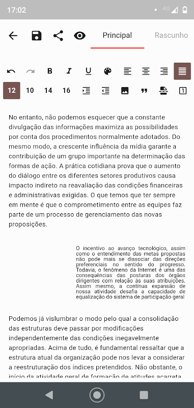 Aplikasi ini mempunyai fungsi mudah untuk memformat teks anda, seperti: saiz fon, warna, penjajaran, teks tebal, condong, garis bawah, petikan terus panjang, nota kaki, pemisah halaman dan sisipan imej.