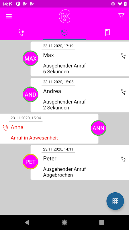 Tetapi anda boleh berbuat lebih banyak lagi! Oleh itu, status rakan sekerja dalam talian boleh dilihat, sama ada pada telefon atau tersedia, dan panggilan pelayaran juga boleh dikonfigurasikan melalui Aplikasi CrossPBX.