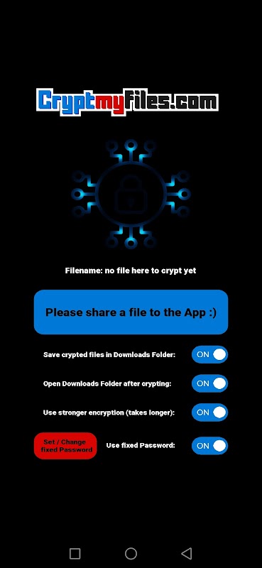 Apa yang anda perlu lakukan hanyalah berkongsi sebarang Data ke Apl, Apl akan meminta anda memasukkan Kata Laluan rahsia untuk fail, atau anda boleh menetapkan Kata Laluan tetap selama-lamanya. Menu dijelaskan sendiri diprogramkan dan sangat mudah untuk menggunakannya :).