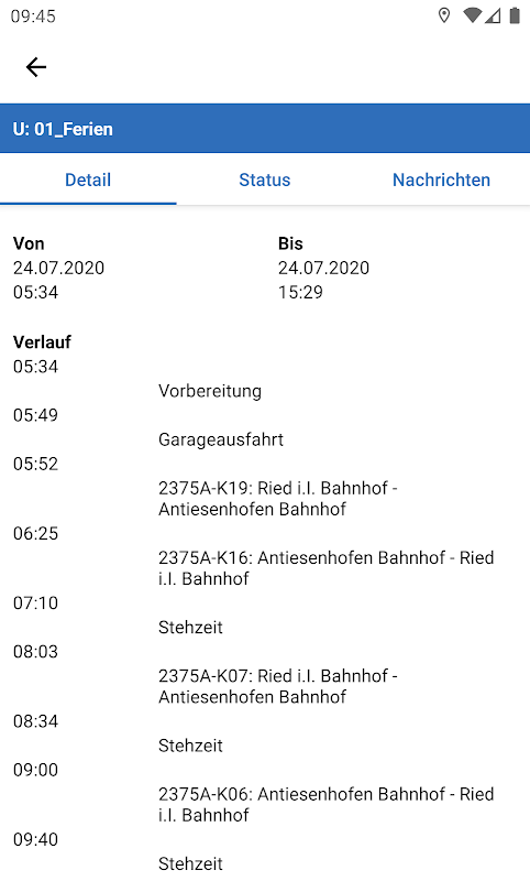 - Paparan janji temu / perjalanan terperinci