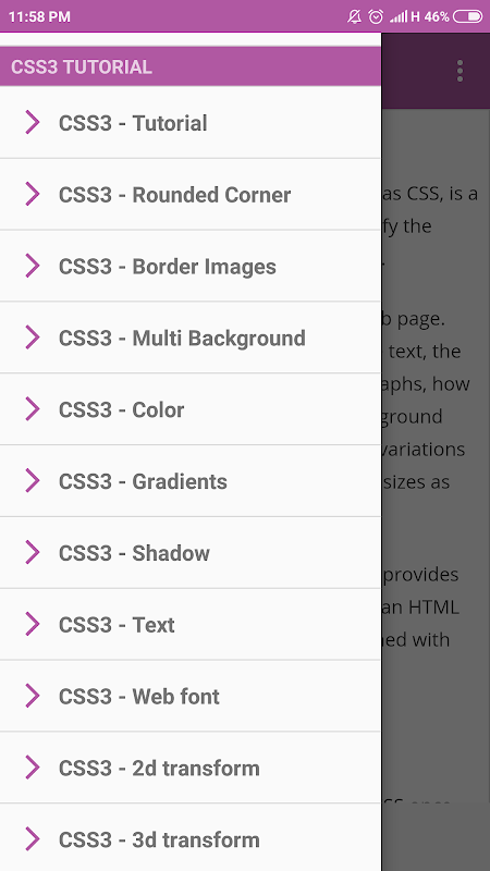 Aplikasi yang sangat mudah yang akan membolehkan CSS memulakan teknologi dari peringkat asas hingga tahap awal dengan penjelasan dan contoh terperinci. Ini adalah yang terbaik bagi mana-mana pembangun web yang berada di peringkat awal. Ini akan membolehkan anda mempelajari CSS sepenuhnya di luar talian, tanpa internet dan aplikasi percuma.
