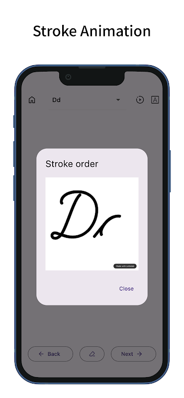 - Lihat susunan strok animasi untuk setiap huruf.