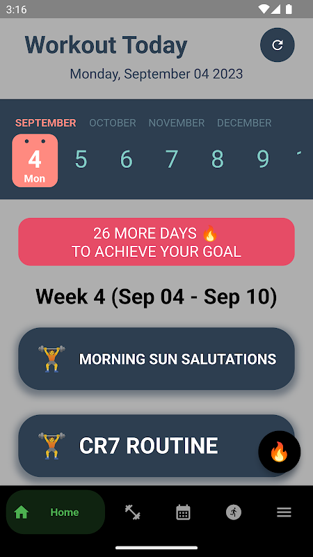 4. Halaman Utama Dinamik: Setelah jurnal anda ditetapkan, apl secara automatik memaparkan senaman harian anda pada halaman utama.