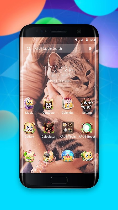 Tema stiker kucing yang lucuGratis, Indah, Stylish untuk Android, tema ini didesain khusus untuk APUS Launcher. Tema Android ini termasuk koleksi ikon HD, wallpaper indah dan membantu ponsel Anda terlihat lebih khas dan stylish.
