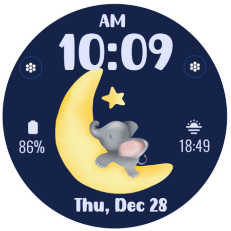 Muka jam Tema Gajah Comel untuk Wear OS.
