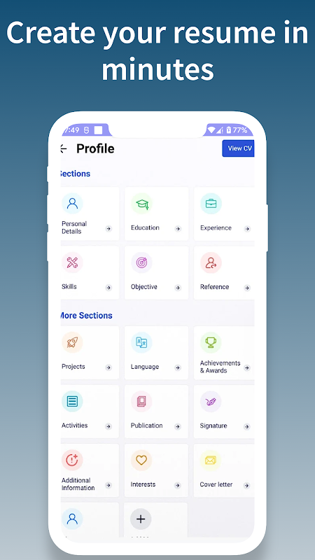 Antara muka pengguna yang intuitif: CV Maker - Resume Builder 2024 mempunyai antara muka mesra pengguna yang memudahkan pengguna menavigasi dan mencipta resume mereka.