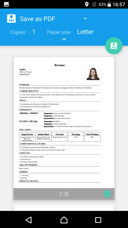 Apl CV Maker & Resume Builder dengan format Templat profesional untuk Membuat PDF