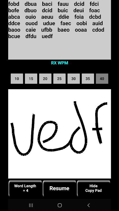 Apl Android pembelajaran kod Morse CW ialah RX hanya pada 10, 15, 20, 25, 30, 35, 40 WPM.
