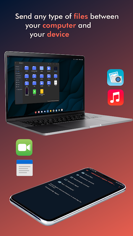 Apl ini menghubungkan komputer anda dan peranti mudah alih anda dengan lancar melalui rangkaian tempatan anda, selamat dengan penyulitan RSA.