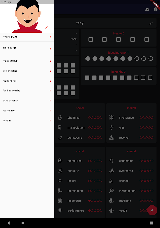 dengan "D10 Character Sheet" uruskan semua watak yang anda ada dalam sesi "vampire the masquerade" "Werewolf 5th" anda.