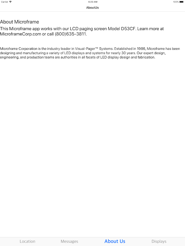 The D53CF enables the user to show text based pages on a remote LCD screen.