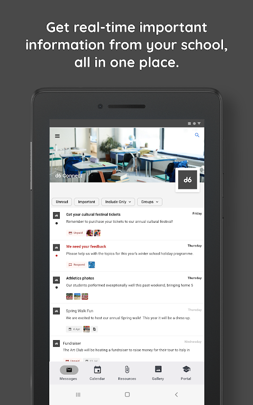 d6 Connect merangkumi semua maklumat yang diperlukan oleh ibu bapa yang terlibat dengan satu sentuhan butang.