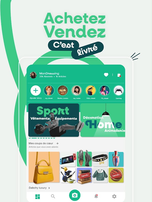 Dabchy, aplikasi membeli-belah No. 1 di Tunisia, menggabungkan dunia pembersihan almari pakaian dan rangkaian sosial. Sama ada untuk fesyen, sukan, hiasan, budaya, hiburan dan banyak lagi, temui barangan baharu atau terpakai pada harga yang sentiasa menarik, untuk seisi keluarga.