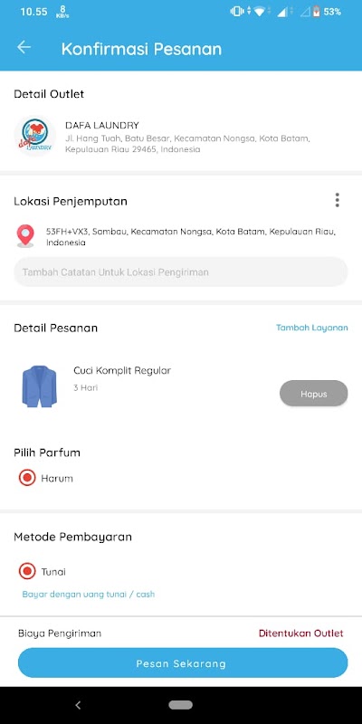 Kini telah hadir aplikasi yang terintegrasi khusus dengan DAFA Laundry di Pondok Pesantren Darul Falah - Batam.