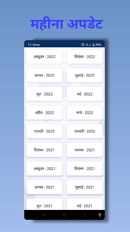 Aplikasi Hal Ehwal Semasa Harian menyediakan hal ehwal semasa yang dikemas kini setiap bulan dalam bahasa Hindi. Kami menyediakan kemas kini setiap hari