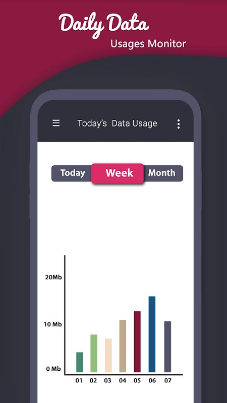 Data Usage Monitor adalah aplikasi yang mudah digunakan untuk anda mengatur penggunaan data anda. Monitor Penggunaan Data membantu anda mengukur lalu lintas data harian anda dengan tepat, dan menganalisis data dengan cara yang mudah difahami. Ini juga muncul peringatan ketika anda mencapai had lalu lintas data, yang melindungi Anda dari penggunaan data secara berlebihan.
