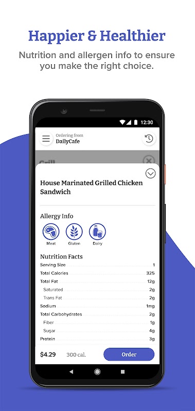 Sarapan pagi, makan tengah hari atau bila-bila masa di antaranya; DailyCafe memenuhi keinginan anda. Sama ada kopi untuk memulakan pagi anda, atau rehat yang sangat diperlukan untuk makan tengah hari, DailyCafe membolehkan anda melihat dengan cepat dan lancar tawaran lazat yang tersedia hari ini. Semak imbas tawaran istimewa harian atau susun semula kegemaran sedia ada anda - ringkas dan mudah. DailyCafe membolehkan anda memesan mengikut cara yang anda suka dengan menu yang boleh disesuaikan dan cadangan chef. Sediakan barang anda apabila anda mahu, di mana anda memerlukannya, dengan hanya memilih masa dan lokasi tempat anda ingin mengambil makanan anda. Ketik dan bayar dengan cepat menggunakan pilihan pembayaran yang fleksibel dan anda bersedia untuk menjalani hari sibuk anda.