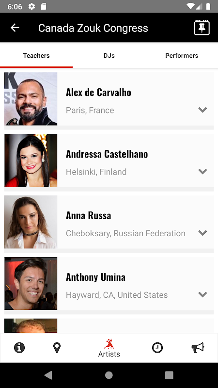 ✓ Dapatkan maklumat terperinci mengenai kejadian-kejadian, termasuk tempat, artis, bengkel dan aktiviti