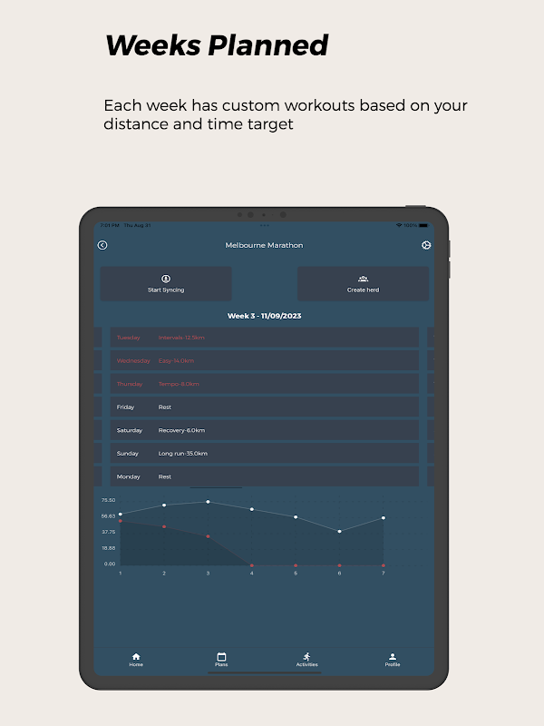 Rancang latihan anda dengan lebih berkesan dengan jadual mingguan yang jelas di hujung jari anda. Jejaki kemajuan anda semasa anda pergi juga.