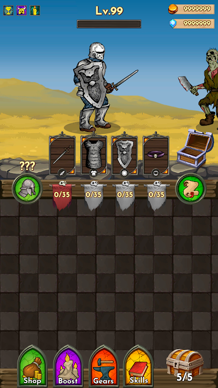 Permainan ini sangat mudah untuk dimainkan. Seret dan lepaskan item yang sama di atas satu sama lain untuk mendapatkan item tahap yang lebih tinggi. Bandingkan item baru dengan barang yang sudah anda miliki dan kumpulkan kombinasi peralatan terbaik.