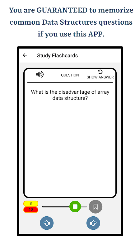 Aplikasi ini akan membantu anda mempelajari sebutan yang betul bagi istilah yang digunakan dalam Struktur Data menggunakan bahasa Inggeris. Berikut ialah ciri utama apl ini