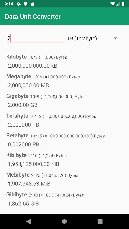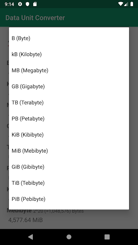 Alat untuk menukar antara pelbagai jenis data komputer (mis. MB -> GB)