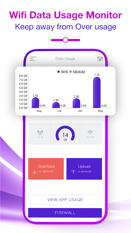 Pengurus penggunaan data ialah alat pemantau dan penjejakan penggunaan data yang ringkas dan berkuasa yang membantu pengguna mengawal data internet mudah alih mereka dan menjimatkan wang pada bil telefon bulanan mereka. Apl penjejakan data juga memperincikan apl mana yang menggunakan lebih banyak data dan menerima makluman sebelum ia kehabisan, mengelakkan bayaran lebihan yang tidak perlu. Aplikasi monitor kelajuan Internet juga serasi dengan telefon mudah alih dan tablet android baharu dan lama.