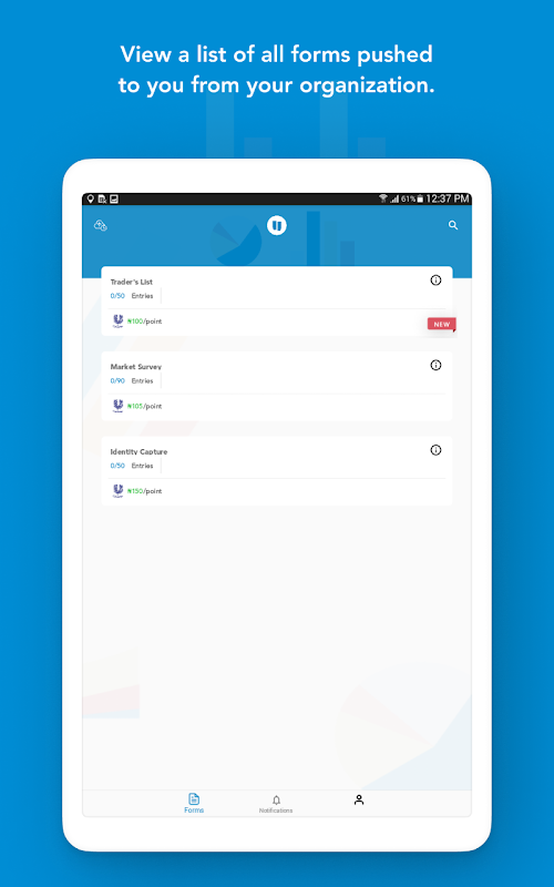 Aplikasi mudah alih membolehkan ejen mengumpul data berdasarkan bentuk yang ditakrifkan oleh organisasi dan membolehkan ejen lapangan mengumpul seberapa banyak titik kemasukan data yang mungkin atau sebagaimana yang ditakrifkan oleh organisasi.