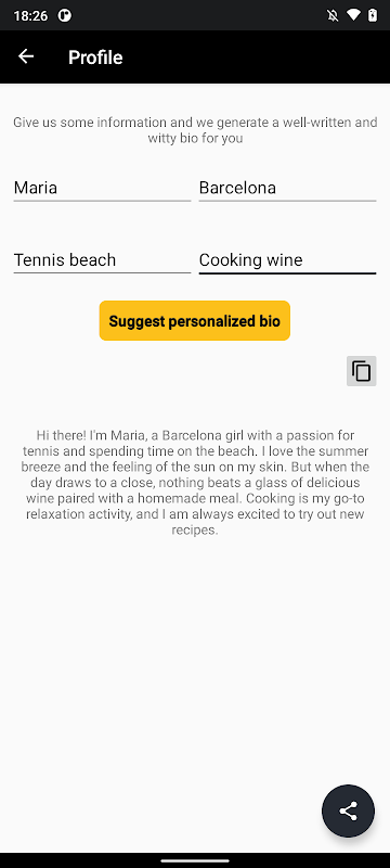 Kami juga menyokong anda dalam membuat teks bio profil berdasarkan minat, bandar atau hobi anda.