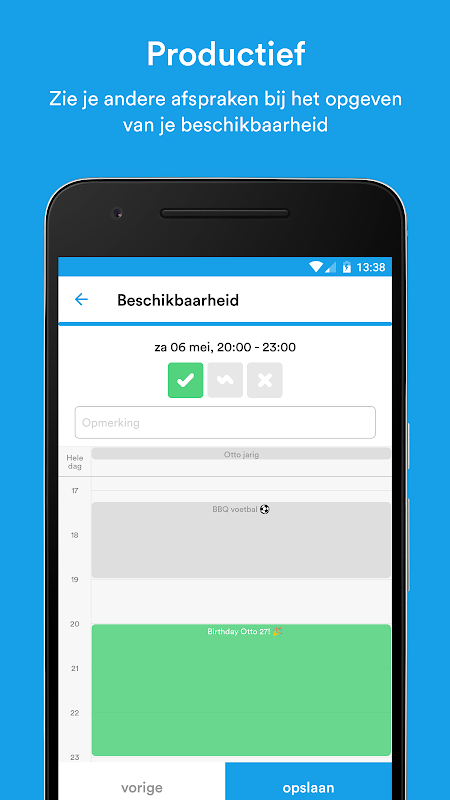 • Kalendar: untuk menunjukkan kepada anda aplikasi yang anda sama ada anda bersetuju dengan tarikh dicadangkan.